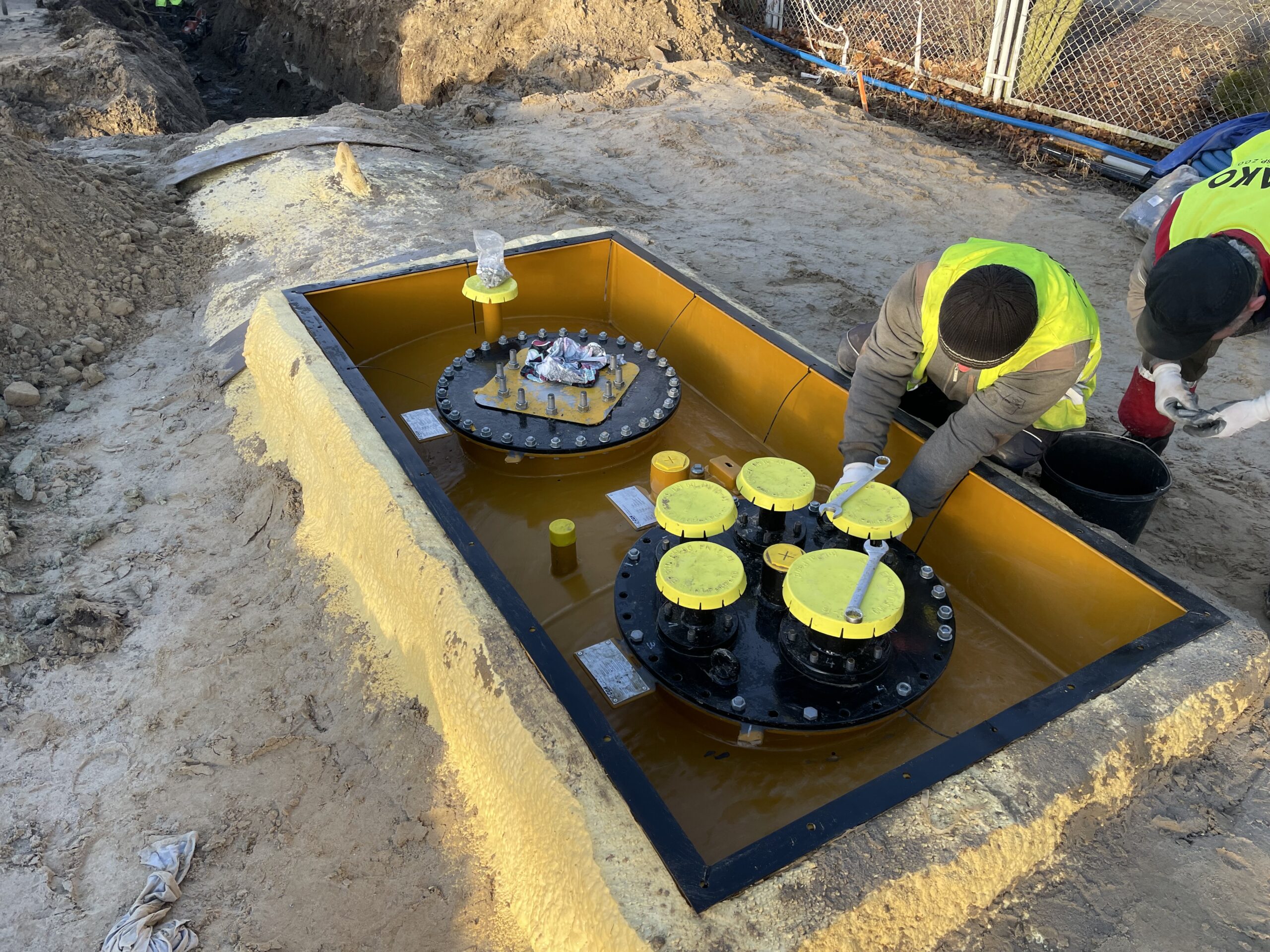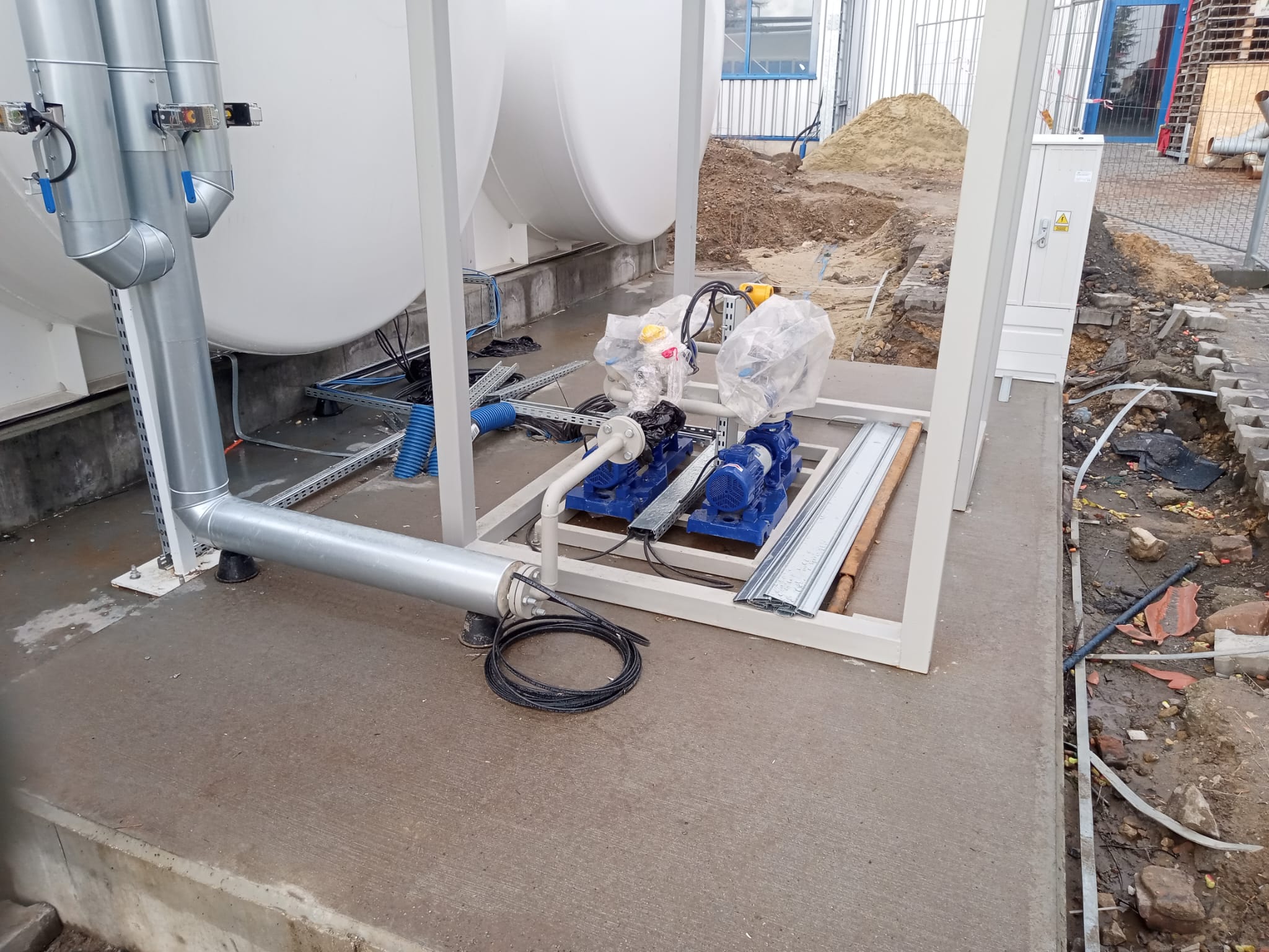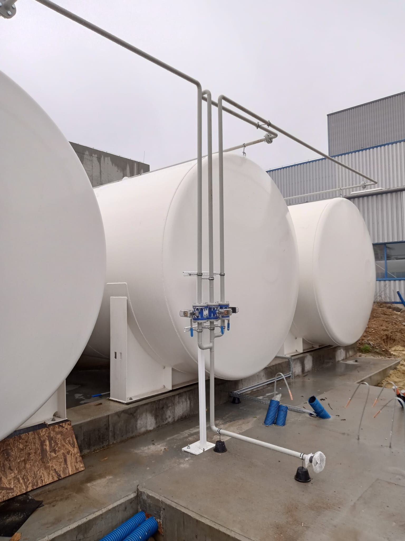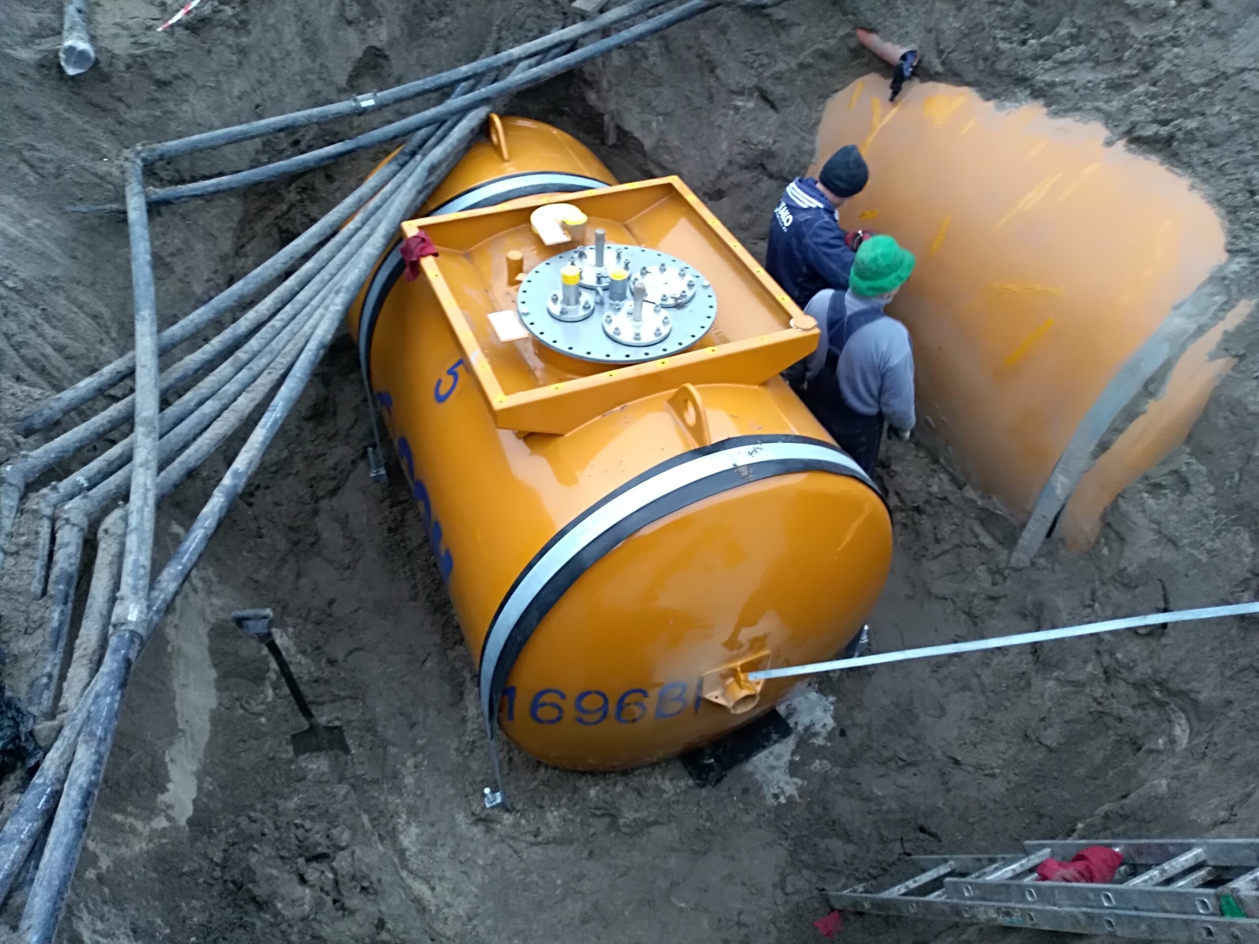 – Montaż 3 zbiorników dwupłaszczowych V50m3