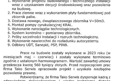 Inwestycja: Rozbudowa czynnej stacji paliw o zbiornik V100m3