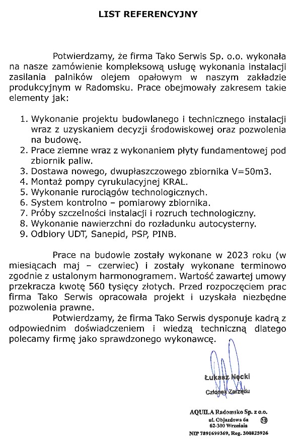 Klient: Aquila Radomsko Sp. z o.o.