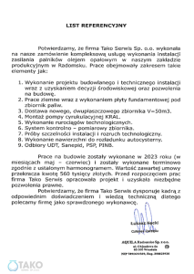 Zakres prac projektowych: Brak prac projektowych – dostarczono przez Inwestora