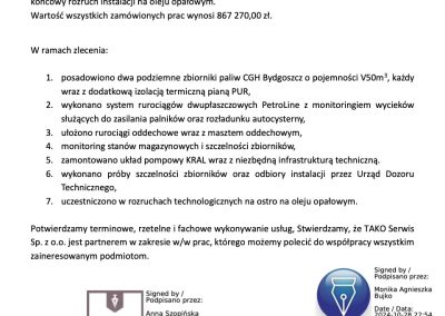 Inwestycja: Montaż 3 zbiorników V100m3 do magazynowania oleju opałowego