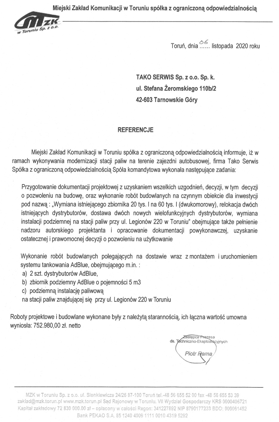 Klient: MZK w Toruniu Sp. z o.o.