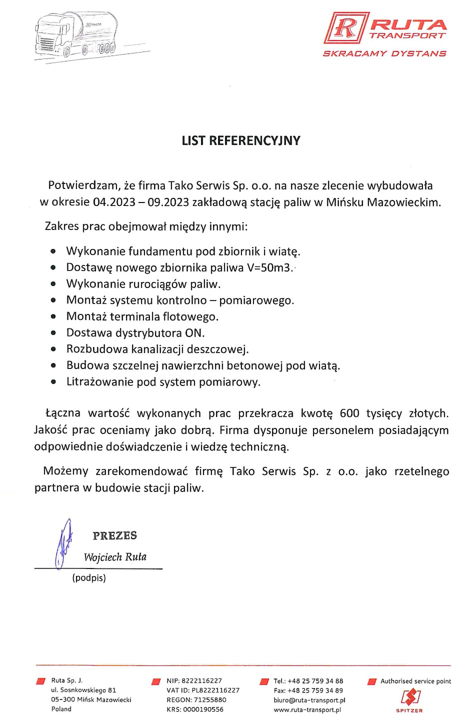 Realizacja dla Ruta Transport