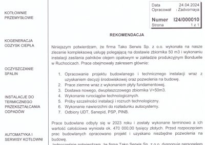 Inwestycja: Montaż 2 zbiorników V50m3 do magazynowania oleju opałowego
