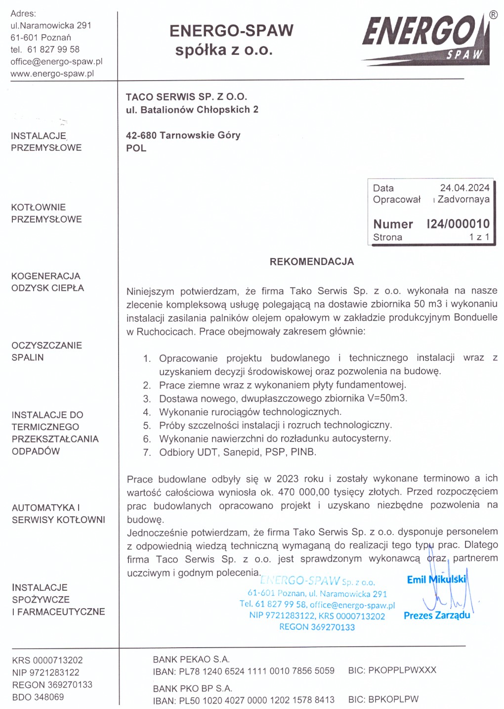 Klient: Energo-spaw Sp. z o.o.